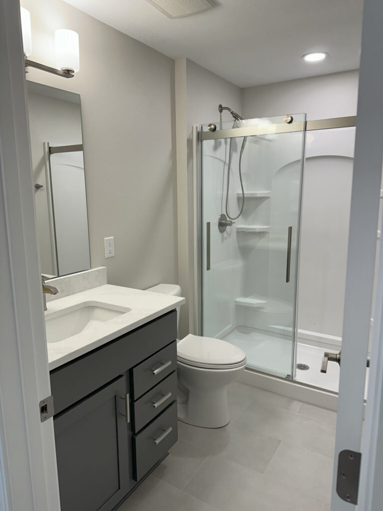 Bring modern comfort to your lower level with a clean, fully finished bathroom — featuring quality fixtures, bright lighting, and easy-to-maintain finishes.